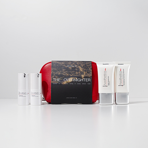 The Overnighter for short stays contains all your essentials for an express morning and evening routine. Includes all your Aesthetics Rx® favourites in convenient travel sizes, perfect for travel, wherever you may go, including international flights*.